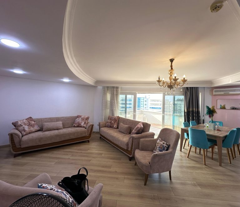 Просторная квартира 3+1 площадью 165 м² на 8-м этаже в современном комплексе MY MARINE в Махмутларе. Полностью меблированная, с двумя санузлами, идеально подходит для комфортного проживания или выгодной инвестиции в недвижимость у моря.