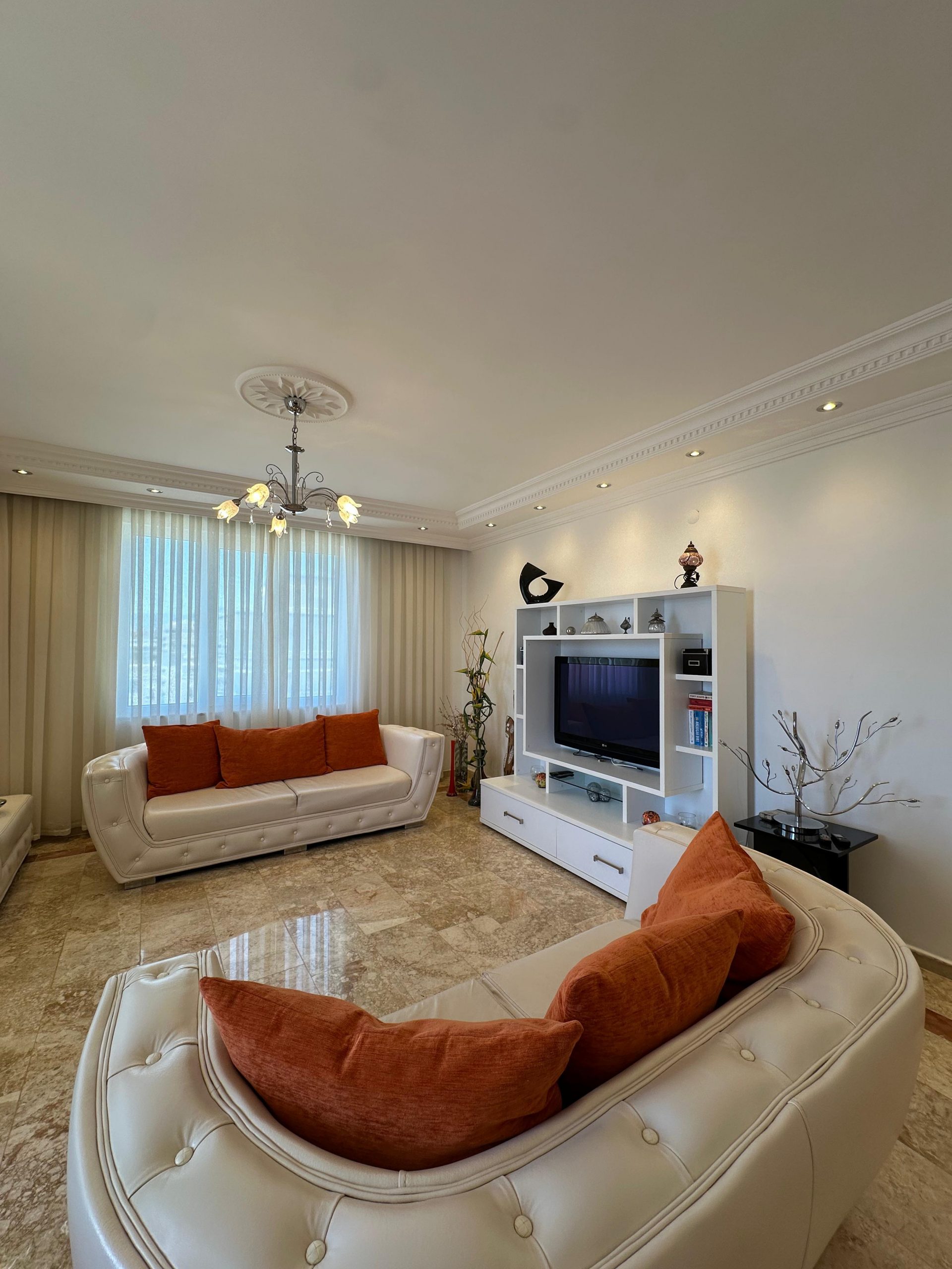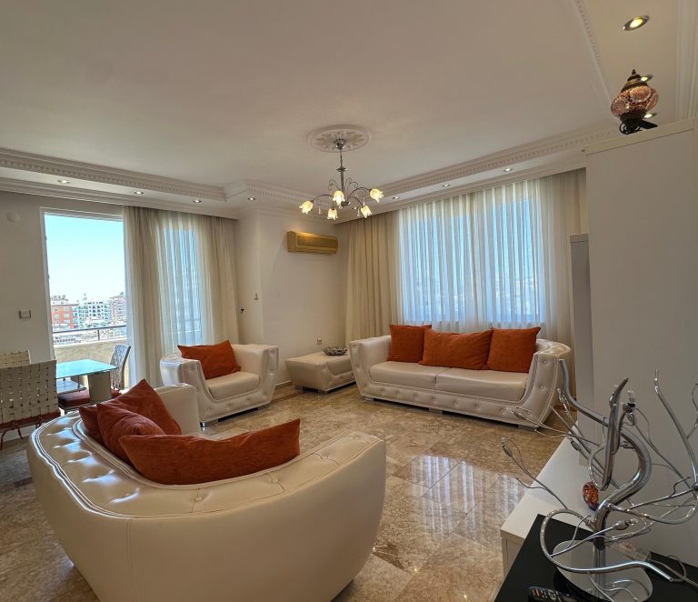 Просторная квартира 3+1 площадью 140 м² на 9-м этаже в современном комплексе. Идеальный вариант для инвестиции или постоянного проживания в 500 метрах от моря.