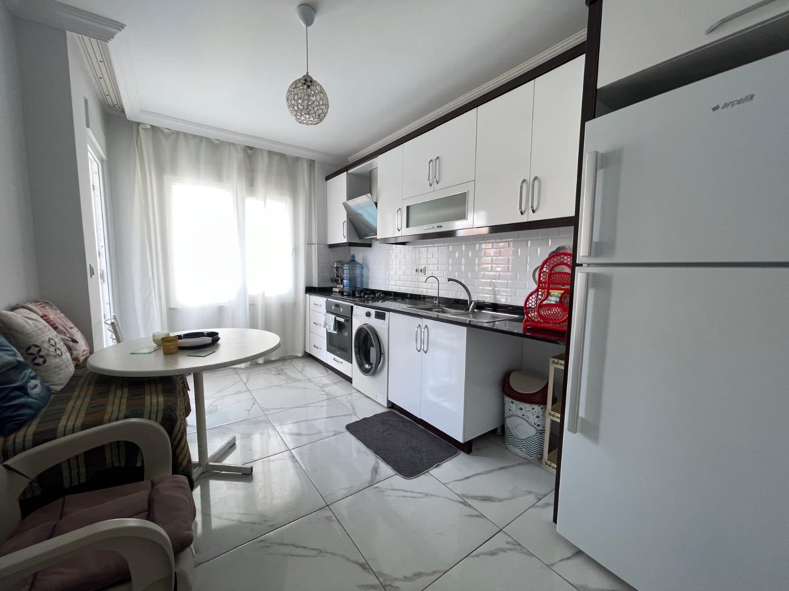 Квартира находится в популярном районе Махмутлар. До песчаного пляжа — всего 450 метров. В шаговой доступности (200 м) расположен торговый центр, что обеспечивает удобство для повседневных нужд.