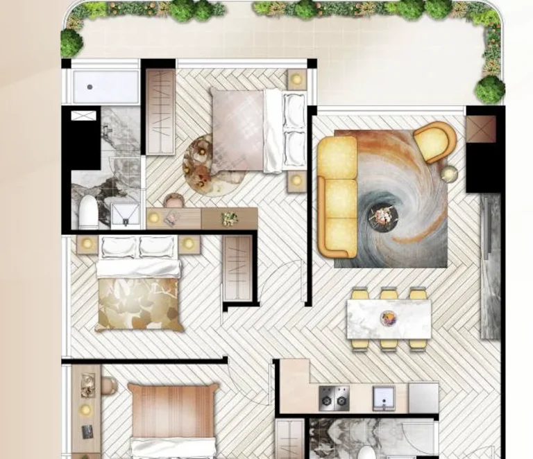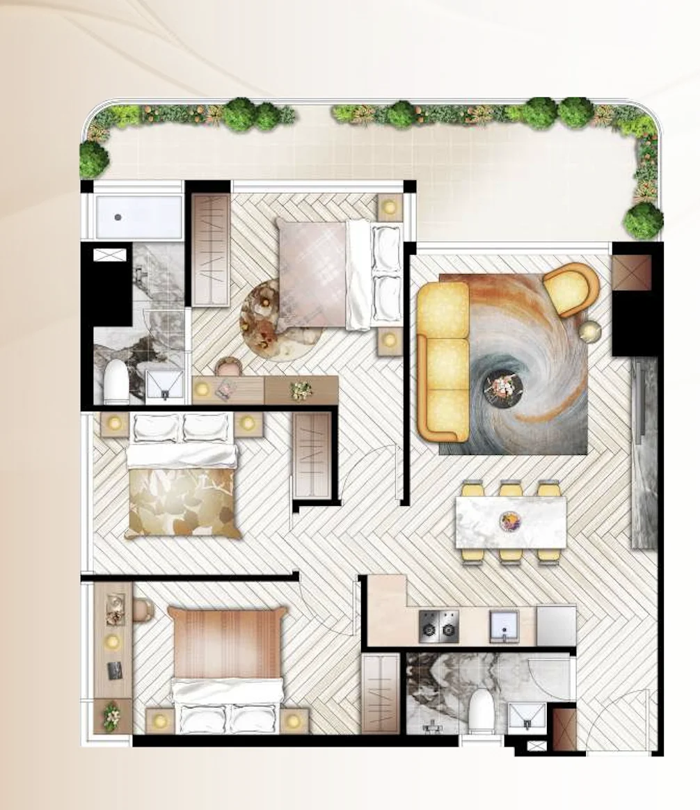Трёх спальные апартаменты Time Square 10 — это формат для тех, кто ищет настоящее жильё у моря, а не просто курортные апартаменты. Каждое утро здесь начинается с вида на океан, а интерьер создан для жизни с комфортом, стилем и пространством.