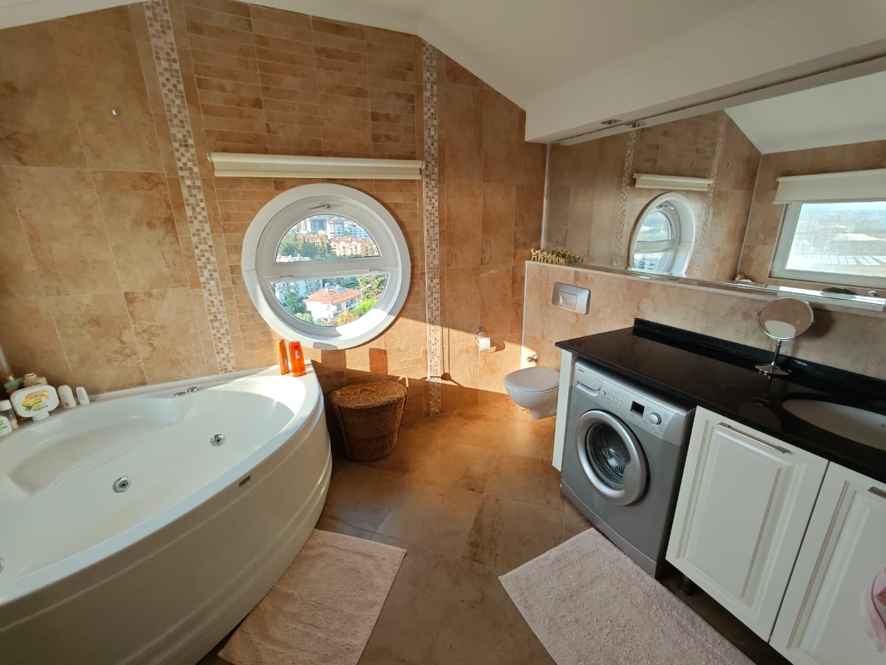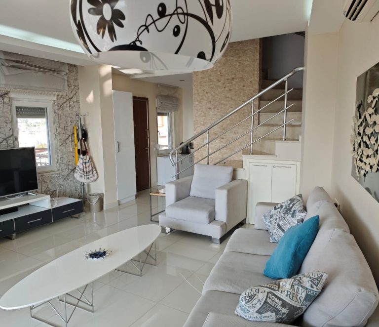 Продаётся просторная двухуровневая квартира-дуплекс с планировкой 2+1 в современном жилом комплексе Elite Country Club в районе Тюрклер, Аланья. Апартаменты расположены на верхних этажах 4-этажного дома и включают гостиную, кухню, две спальни, два санузла и большие балконы с панорамным видом на море. Общая площадь — 140 м², квартира полностью меблирована и оборудована всей необходимой техникой.