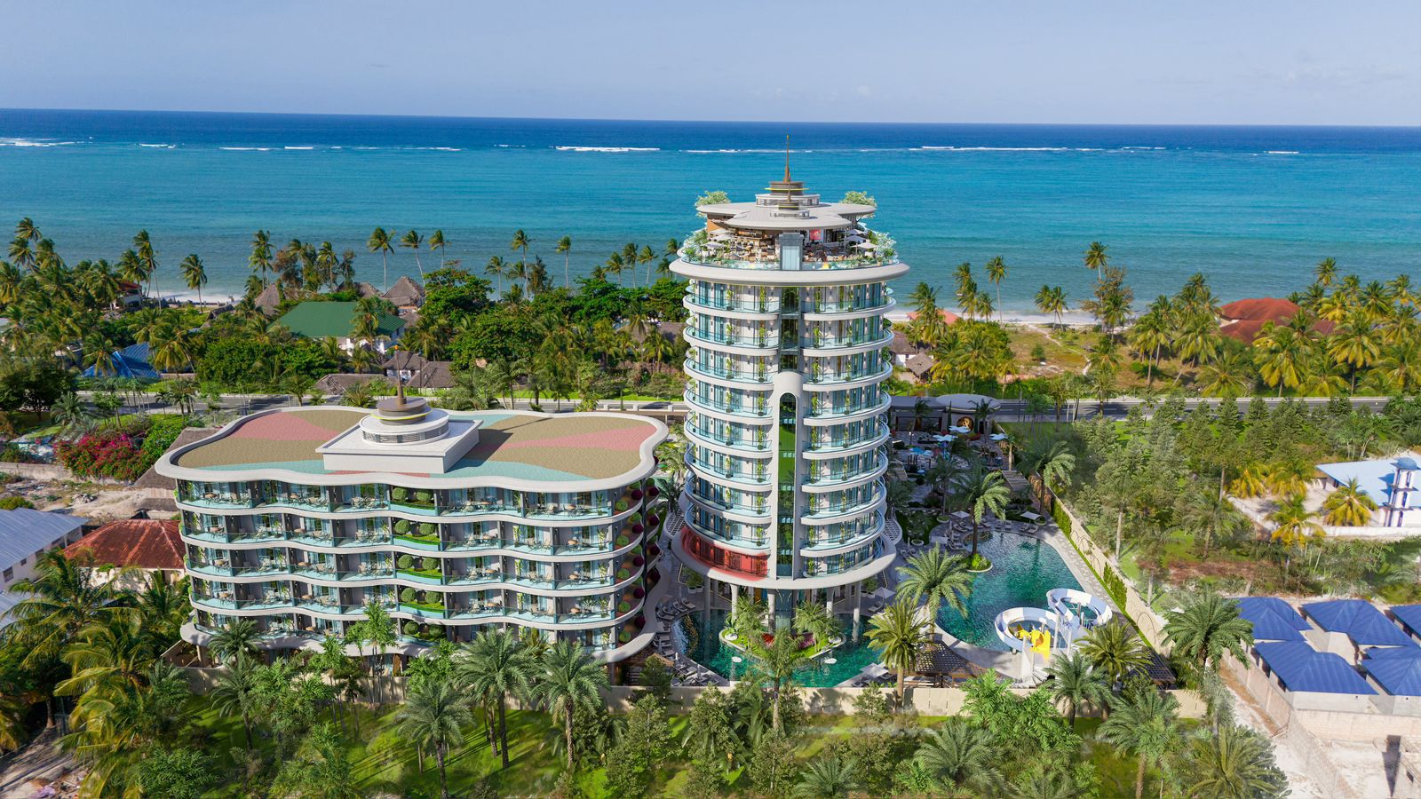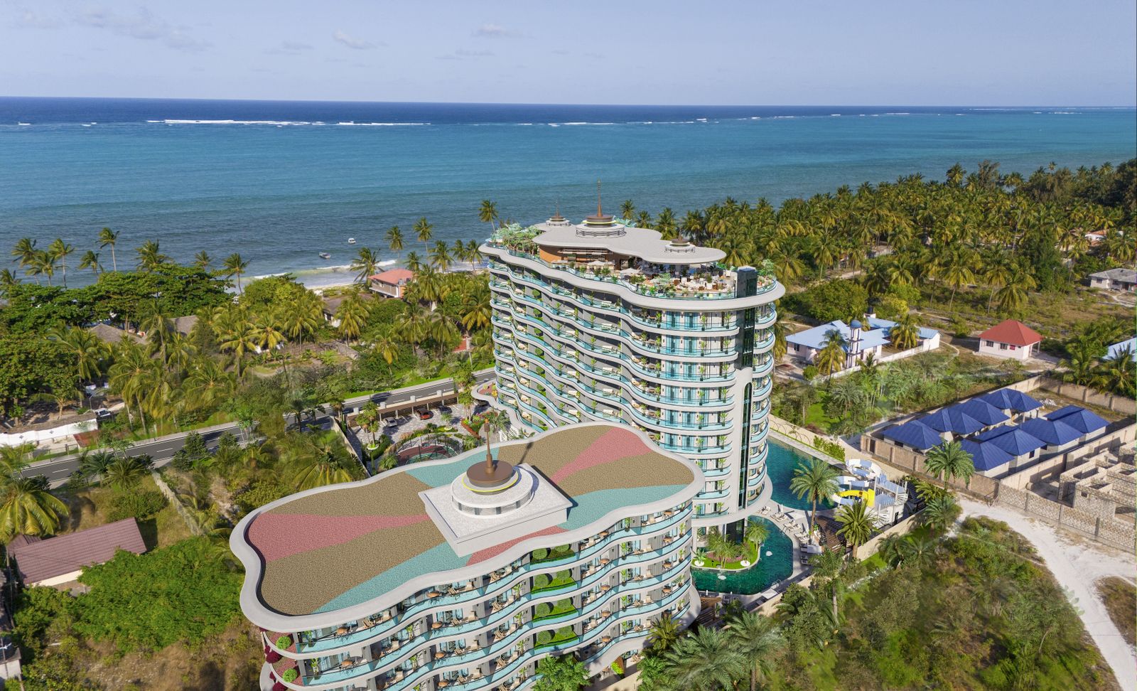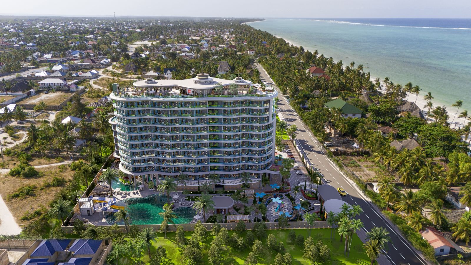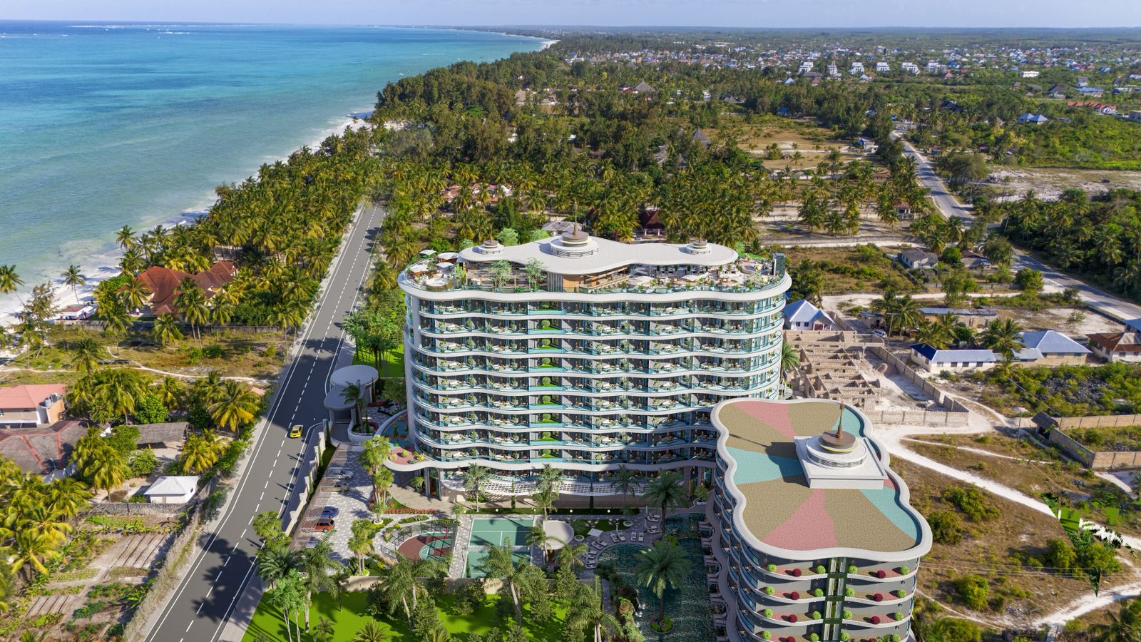 Aura Ra-новый современный комплекс премиум класса с собственной инфраструктурой, расположен на восточном побережье острова Занзибар в Танзании, находящийся всего в 100 метрах от знаменитого в Занзибаре пляжа Паже. Комплекс представляет собой 10-этажное здание с квартирами различных планировок: от студий до квартир с тремя спальнями. Во многих планировках есть варианты квартир с собственным джакузи. На территории резиденции расположена прекрасная инфраструктура, которая не уступает по уровню 5-звездочному отелю.