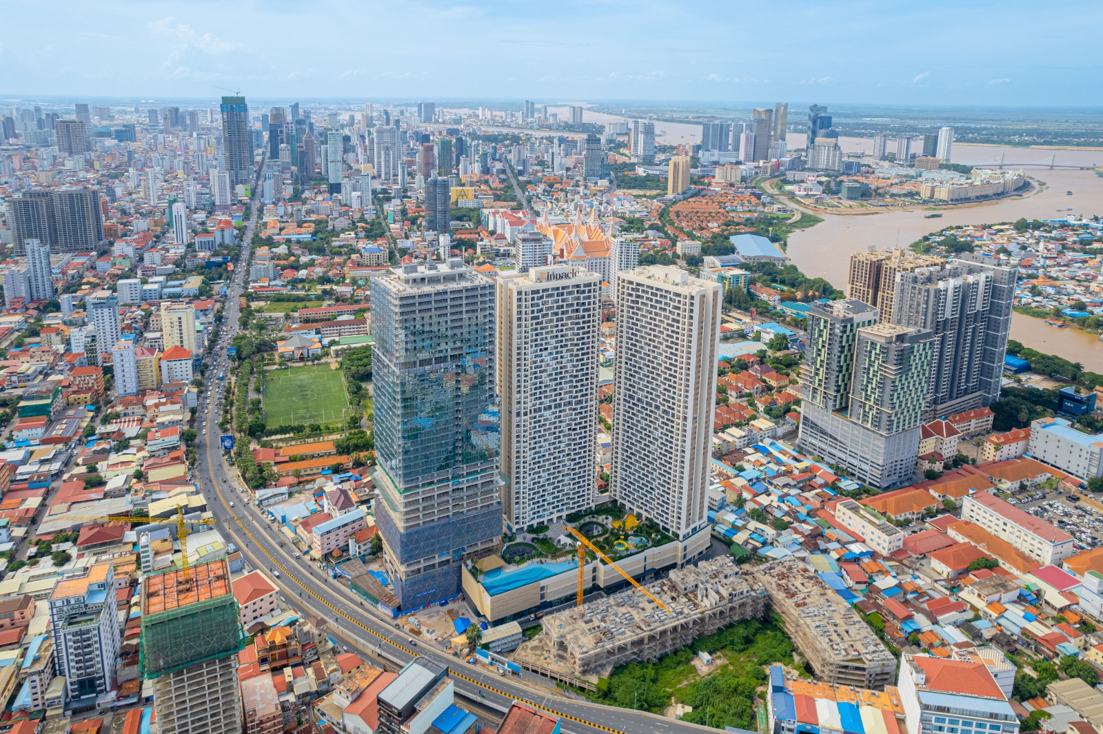 The Pinnacle Residence расположен в самом центре Пномпеня, в престижном районе рядом с рекой Меконг и бульваром Хун Сен (Hun Sen Blvd) — главной артерией города, ведущей напрямую к новому международному аэропорту, который откроется уже в сентябре 2025 года и войдёт в топ-10 крупнейших аэропортов мира.