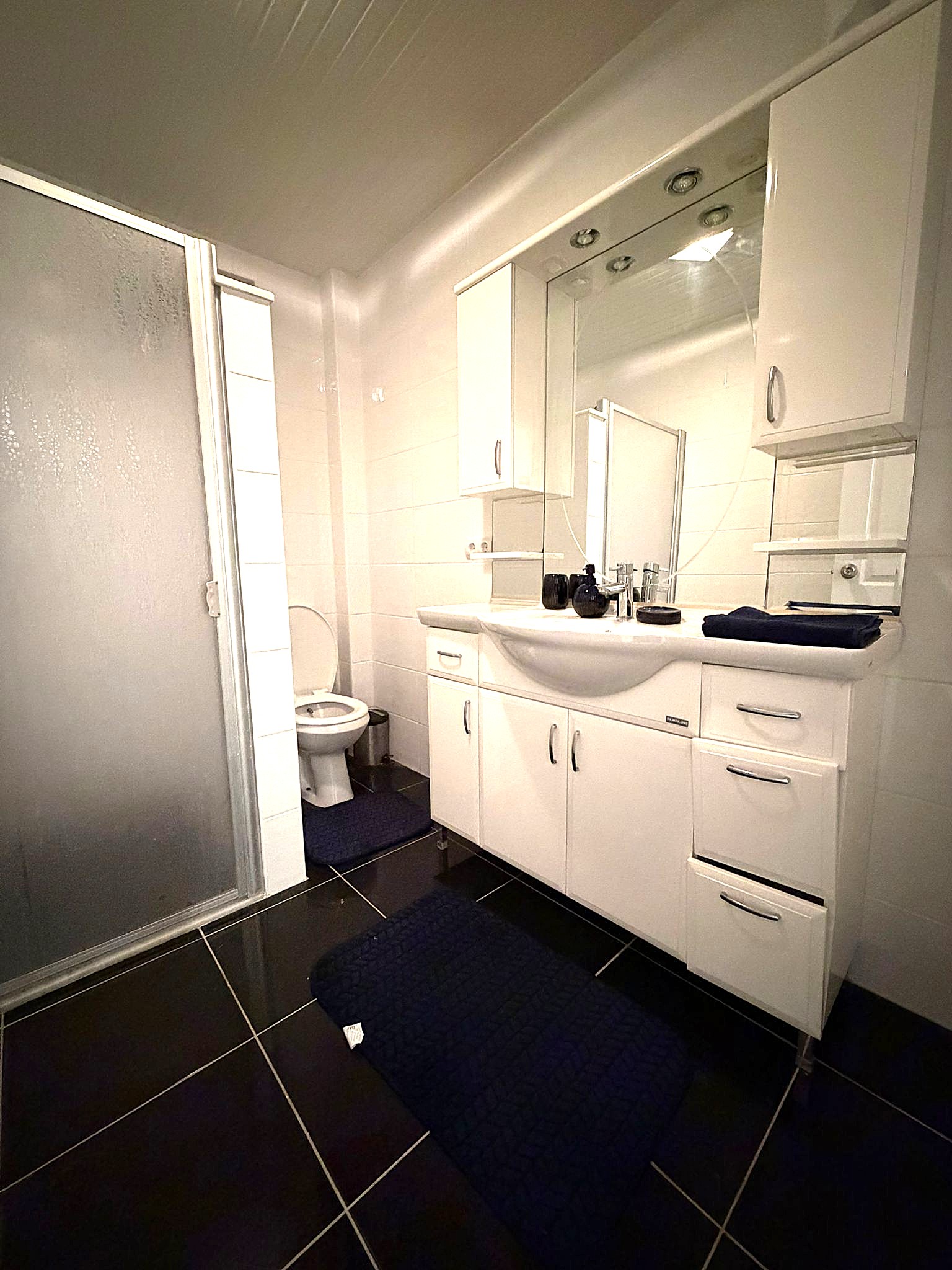 Просторная вилла площадью 180 м² с планировкой 3+1. Внутри: две ванные комнаты, американская кухня, два балкона. Отдельный вход и приватная территория обеспечивают максимальный комфорт и уединение.