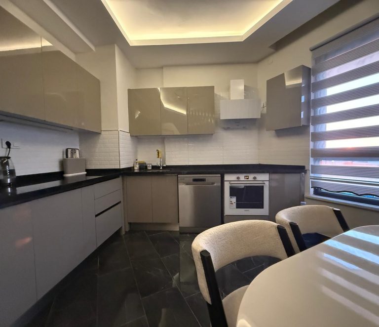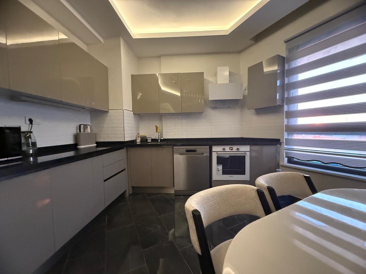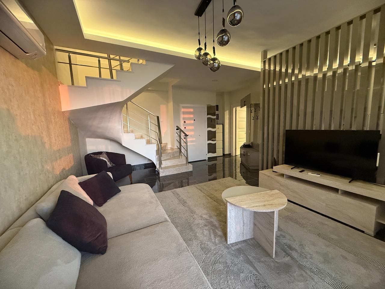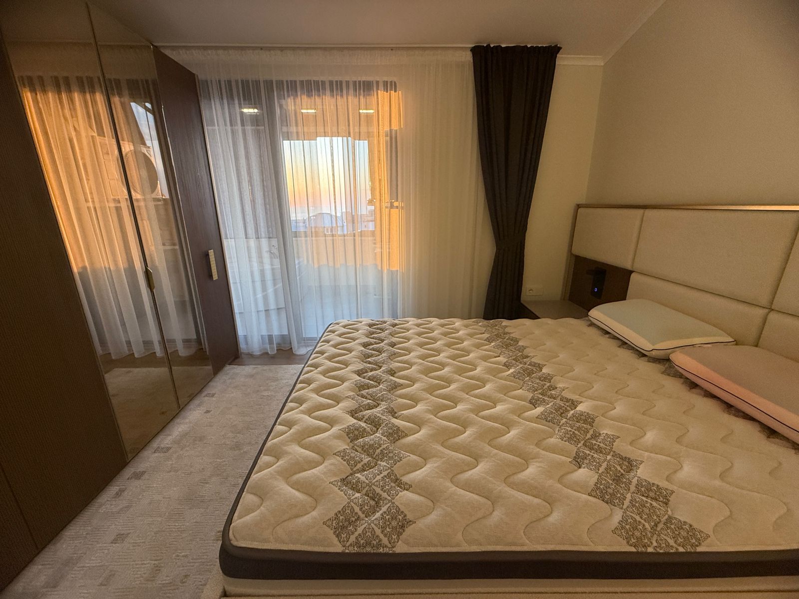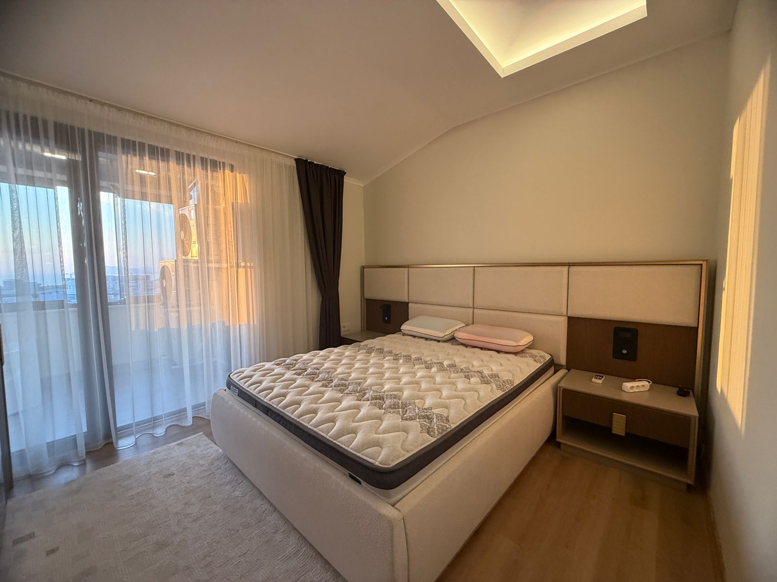 Просторный пентхаус 2+1 на последнем этаже с видом на море в современном комплексе. Площадь 130 м², три санузла и два застекленных балкона. Всего 500 метров до пляжа.