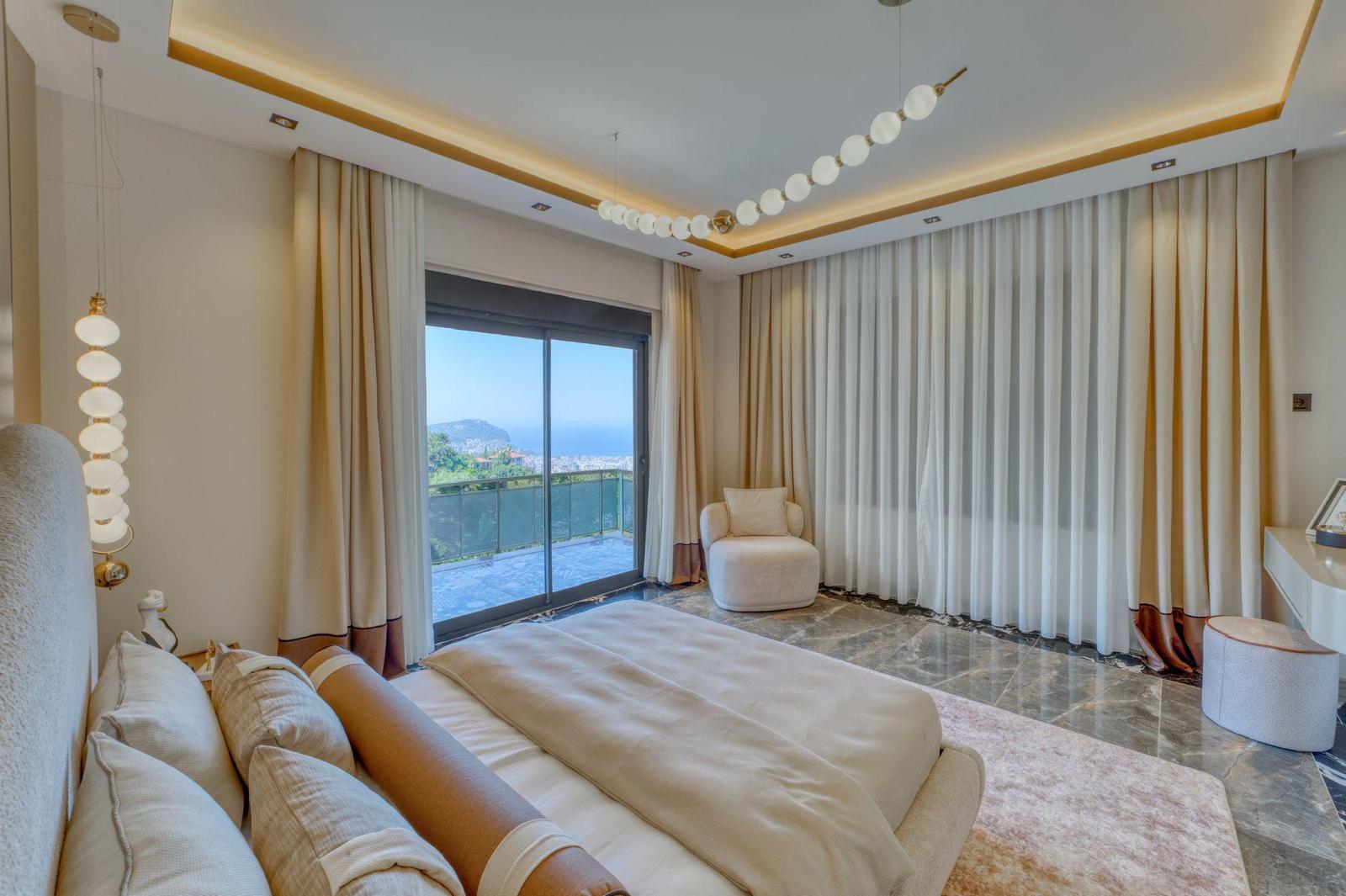 Вилла расположена в престижном районе Бекташ в Аланье. Точное расстояние до моря уточняется, однако из объекта открывается прекрасный панорамный вид на морское побережье.
