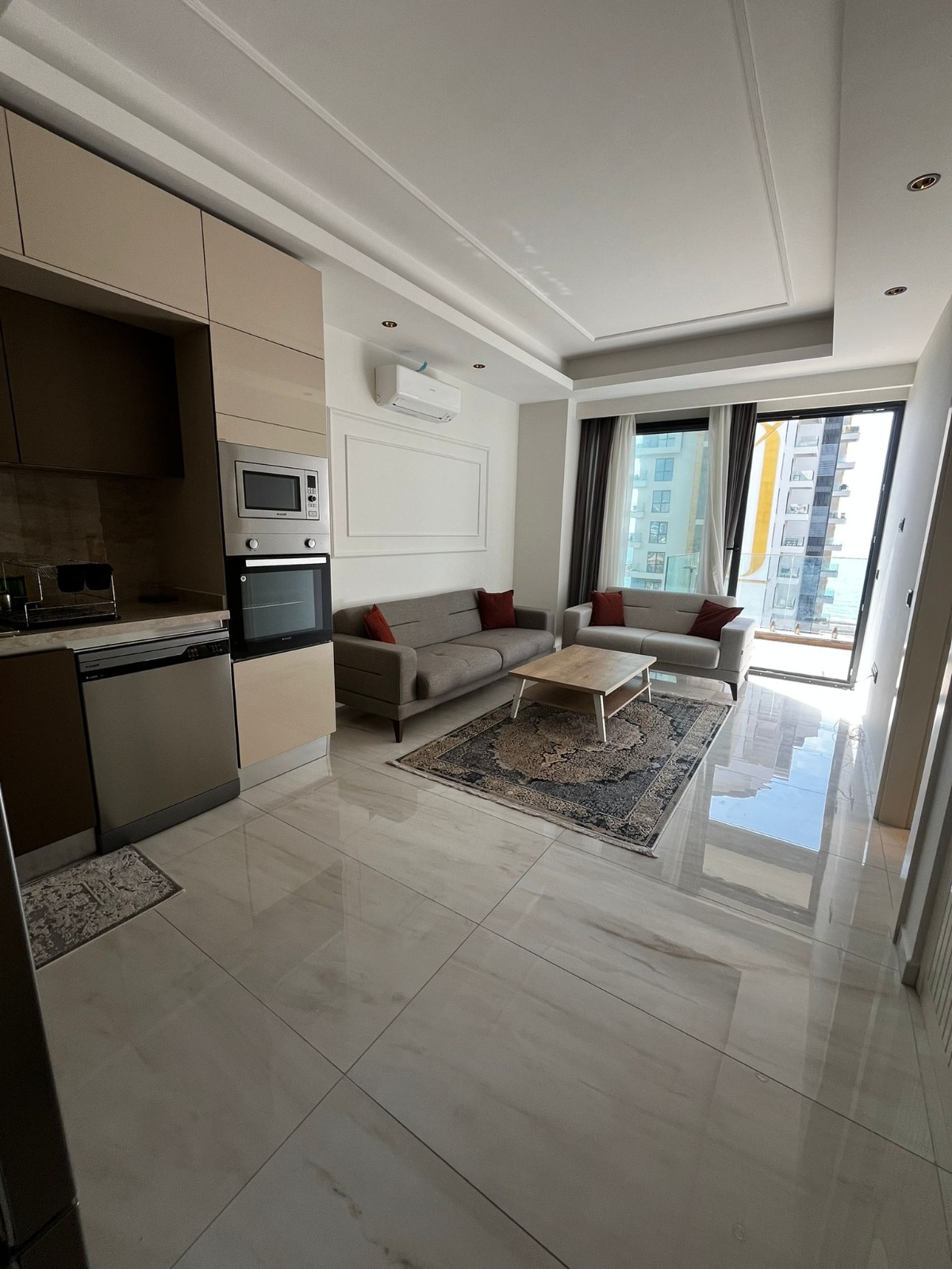 Предлагается полностью меблированная и готовая к заселению квартира с планировкой 1+1. Панорамные окна, современная отделка и все необходимое для жизни. Это готовое решение для тех, кто ценит комфорт, безопасность и премиальный отдых у моря.