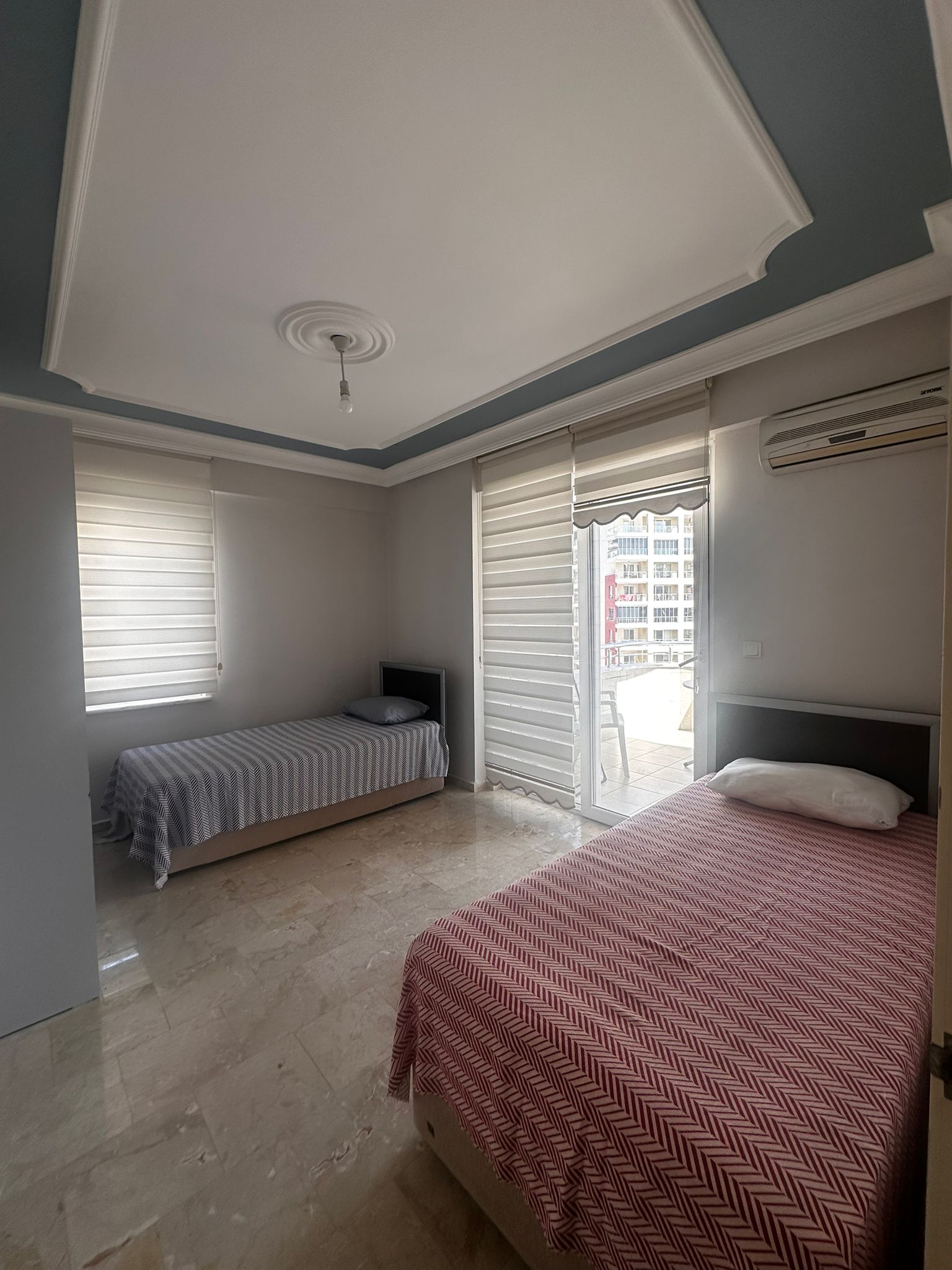Просторная квартира 2+1 площадью 130 м² на 6 этаже 12-этажного комплекса. Полностью меблирована и готова к заселению. Особые условия аренды: отсутствие депозита, оплата раз в 3 месяца.