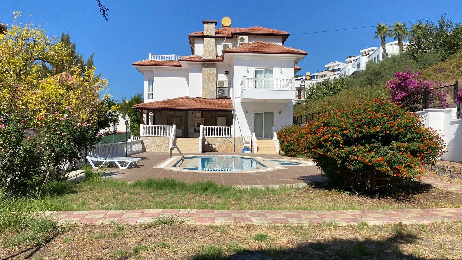 Просторная вилла 5+1 площадью 400 м² для аренды в Демирташе, Аланья. Полностью меблированный объект с частным бассейном и панорамным видом на море предлагает приватность и высокий уровень комфорта.