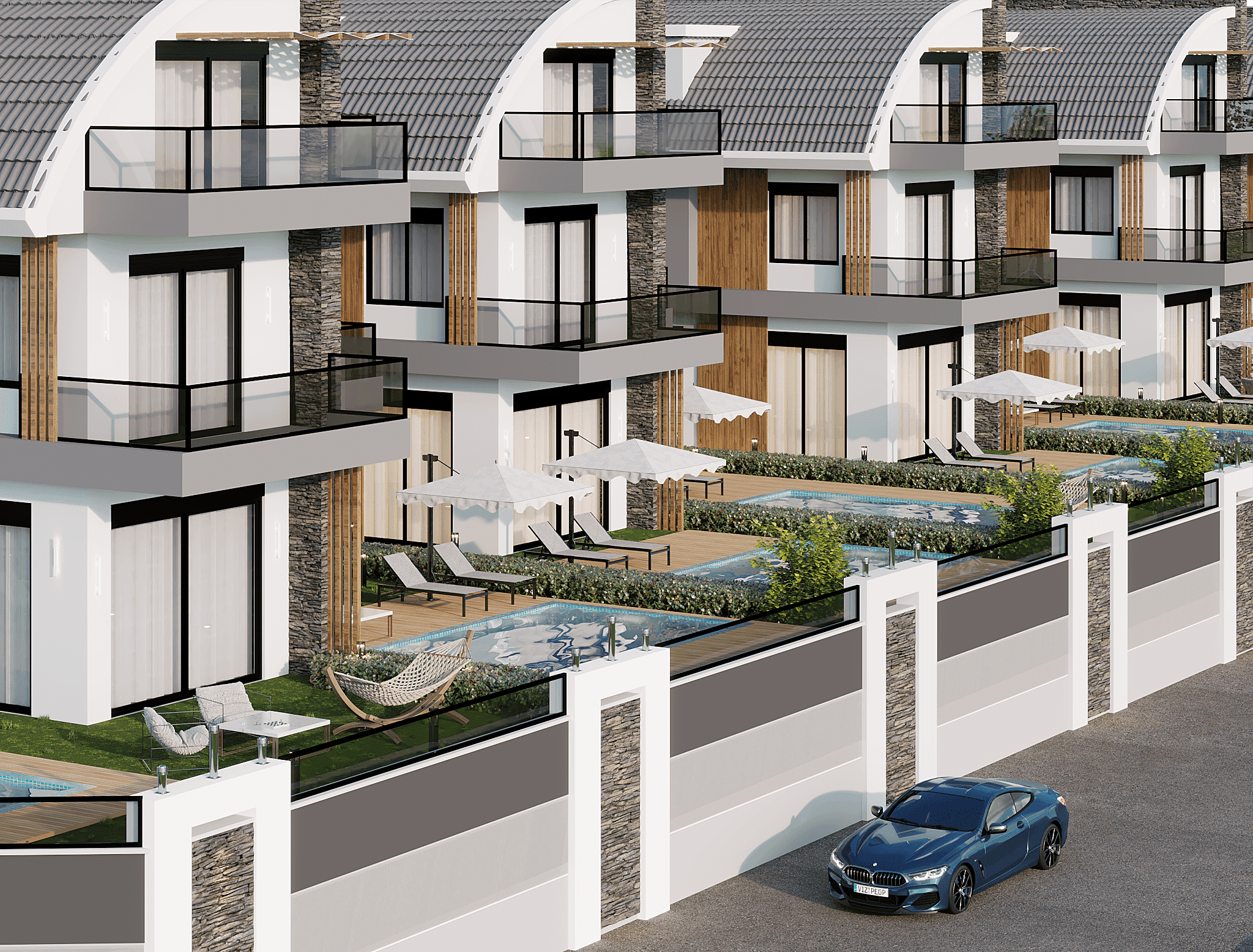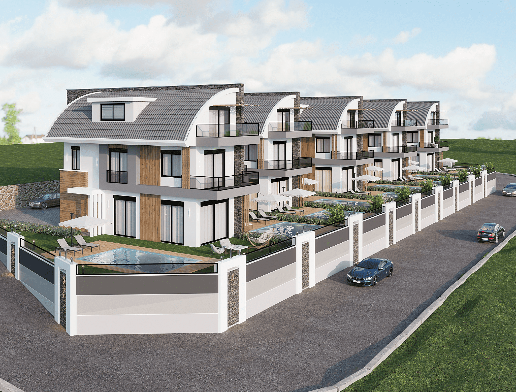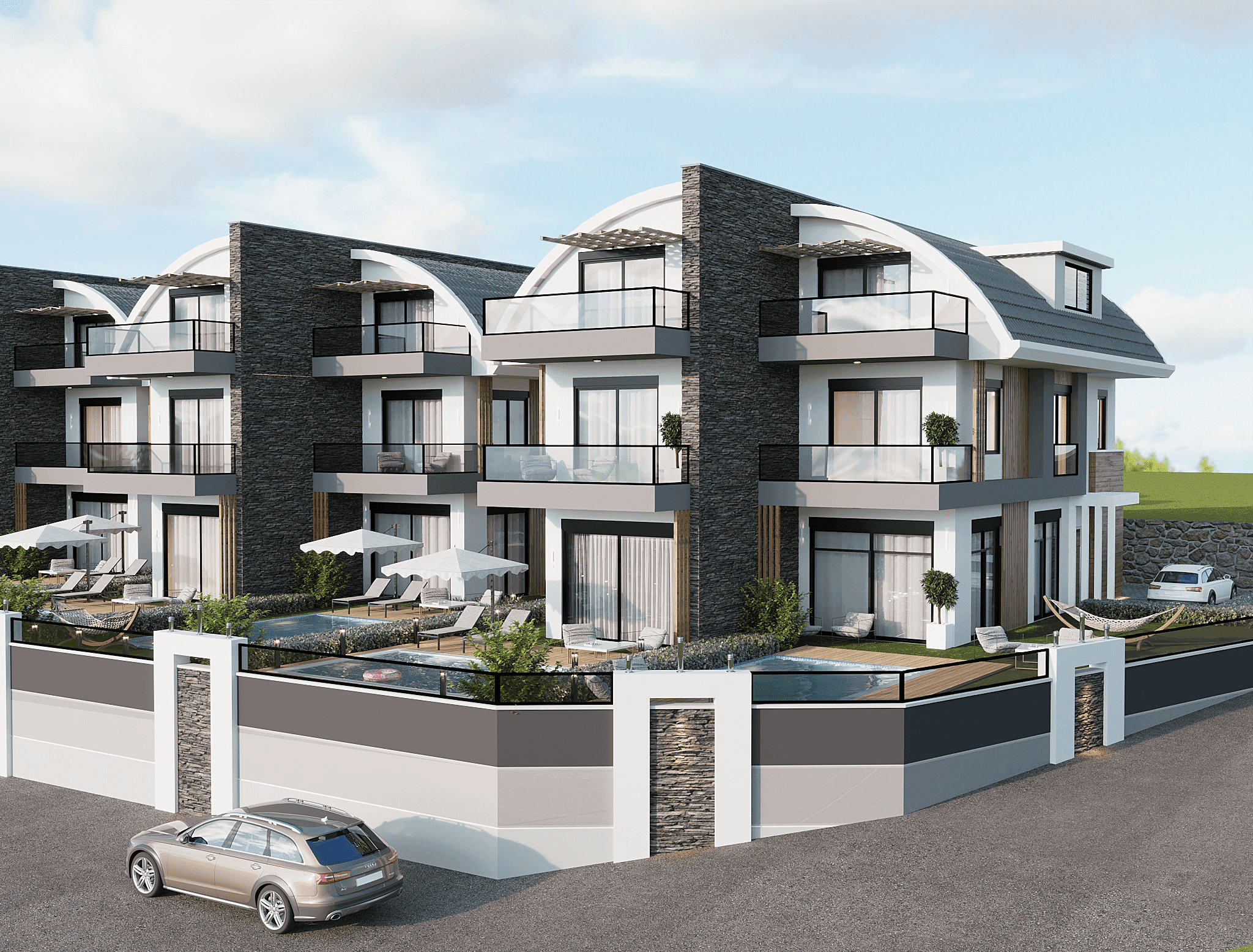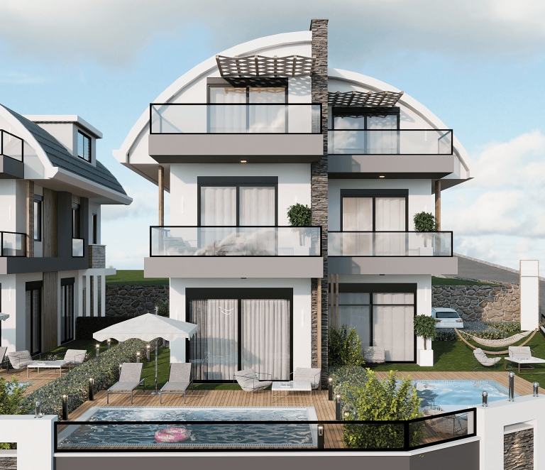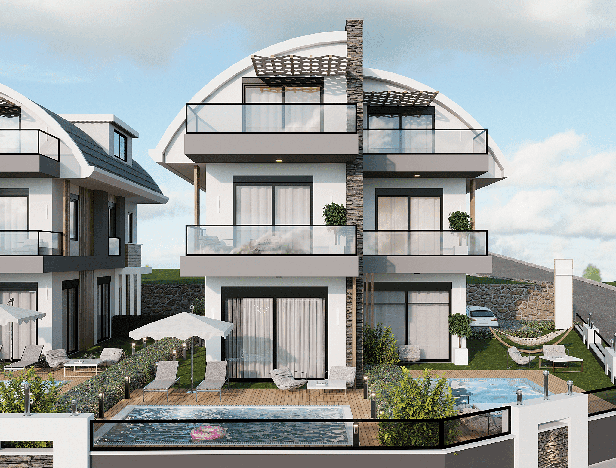 Роскошные виллы 3+1 на продажу в Конаклы, Аланья – с частным бассейном, садом, всего в 500 м от пляжа